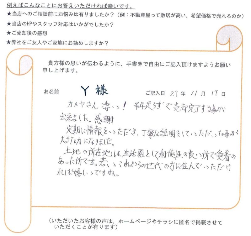 [売主様] 土地ご売却 Y様