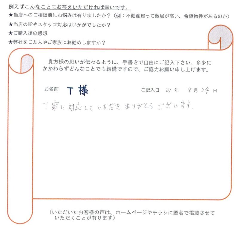 [買主様] 新築住宅ご購入 T様