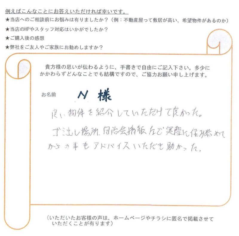[買主様] 土地ご購入 N様