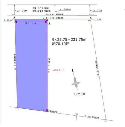 北側 約4mの道路に約9m接する |