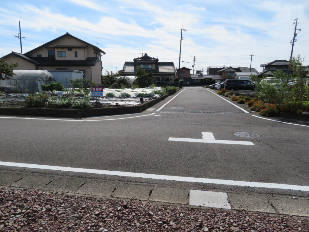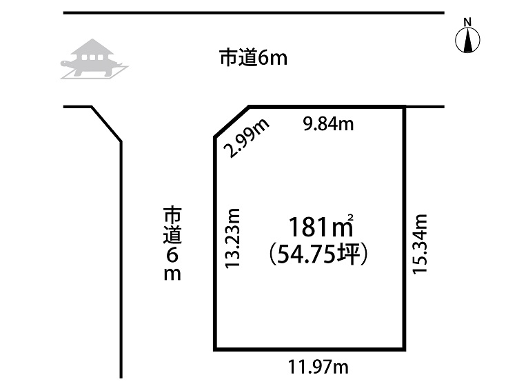 北側 約6mの道路に約9.84m接する 西側 約6mの道路に約13.23m接する |