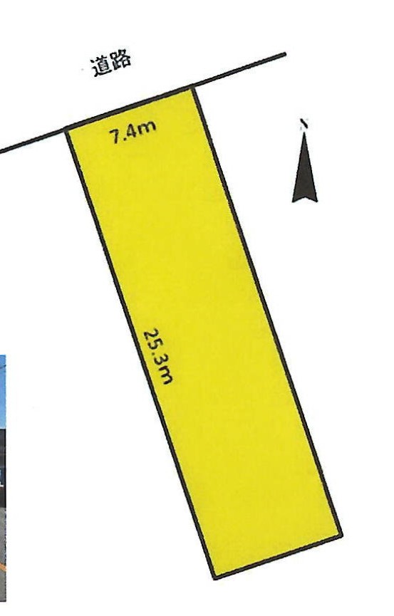 北側 約mの道路に約7.4m接する |