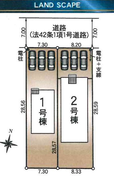 北側 約7.0mの道路に約8.2m接する |