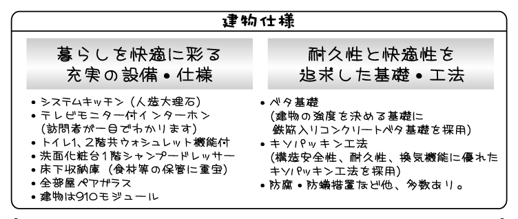 | 間取り | 5LDK+WIC | 構造・階建て | 木造在来軸組工法2階建(910モジュール) |