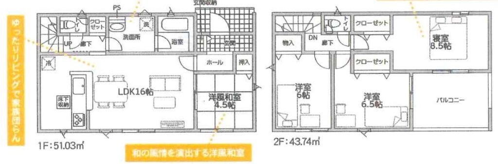 | 間取り | 4LDK | 構造・階建て | 木造ストレート葺又はガルバリウム銅板横葺又はアスファルトシングル葺2階建 |