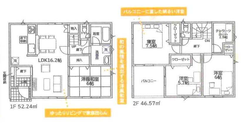 | 間取り | 4LDK+S | 構造・階建て | 木造ストレート葺又はガルバリウム銅板横葺又はアスファルトシングル葺2階建 |